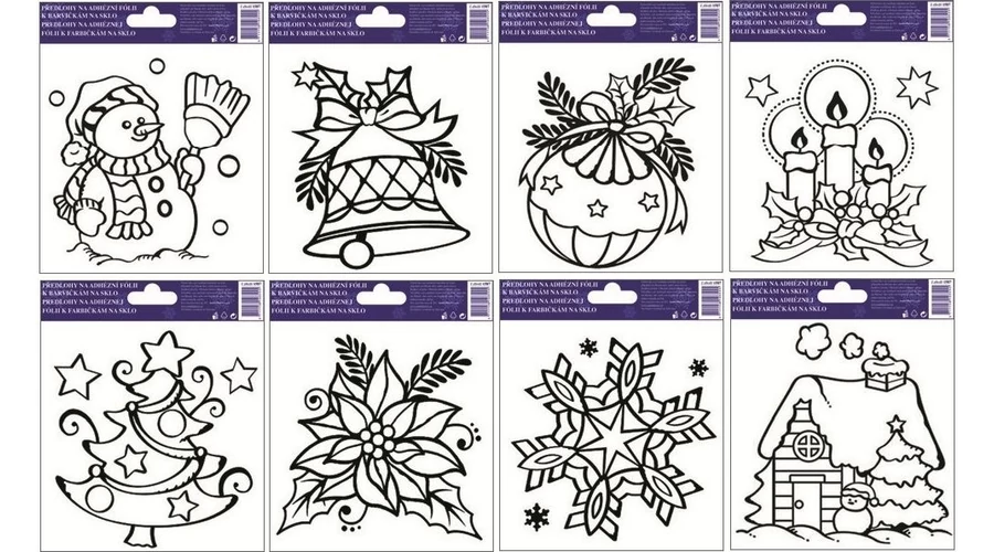 Ezek az öntapadós sablonok tökéletes alapot nyújtanak a kreativitásodhoz. A kiemelkedő fekete körvonalú sablonok üvegfestékekkel, színes ragasztókkal, csillámporral és más technikákkal színezhetők. Ideálisak dekorációk készítéséhez üvegen, ablakokon vagy más sima felületeken.