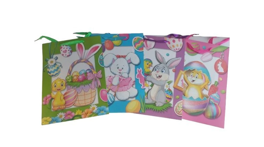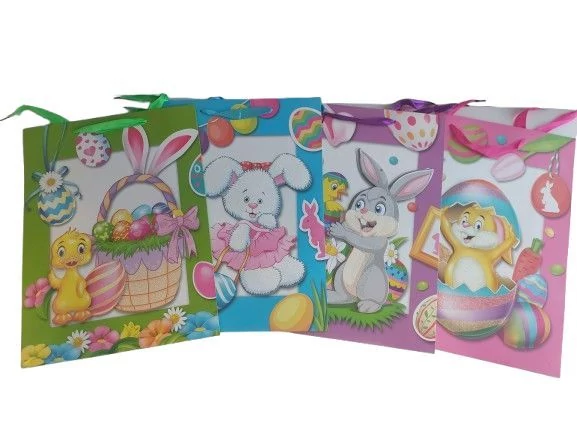 Ajándéktasak 3D Húsvéti Glitteres 30*40cm 4 féle minta