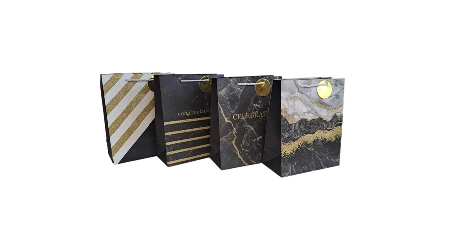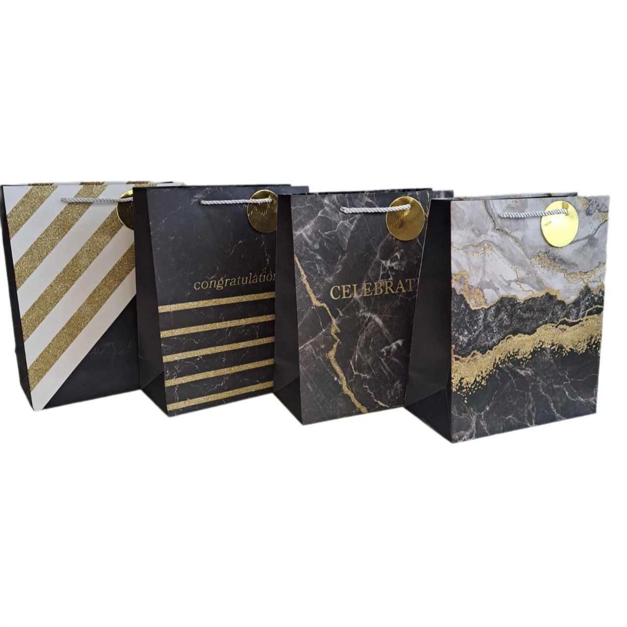 Ajándéktasak Fekete-Arany glitteres 42*30*12cm 4féle minta