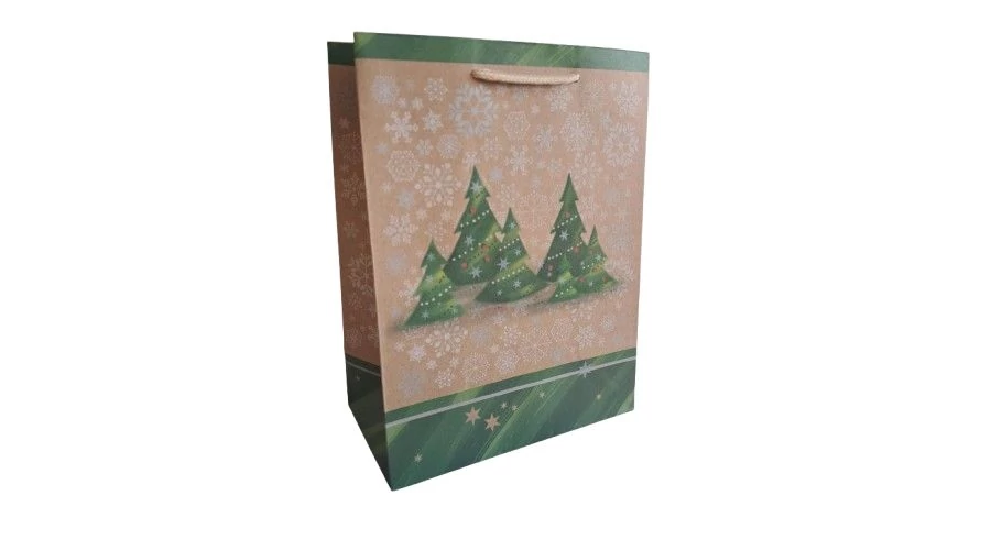 Ajándéktasak Natúr Karácsonyi Fenyőfák M 18*24cm