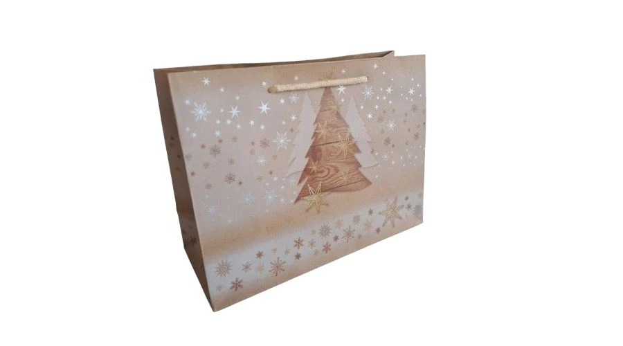 Ajándéktasak Natúr Karácsonyi Fenyőfák M 24*18cm