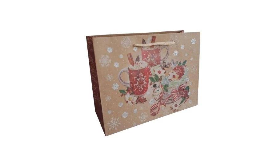 Ajándéktasak Natúr Karácsonyi Sütik, kakaóval M 24*18cm