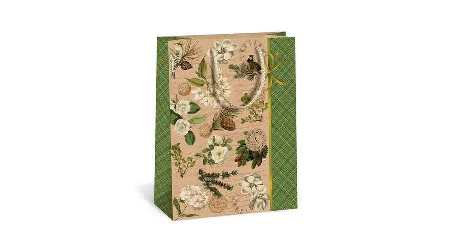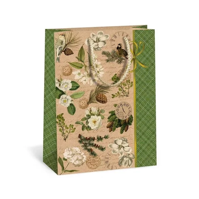 Ajándéktasak Natúr Karácsonyi Virágos ágak M 18*24cm