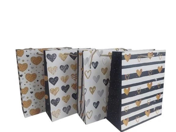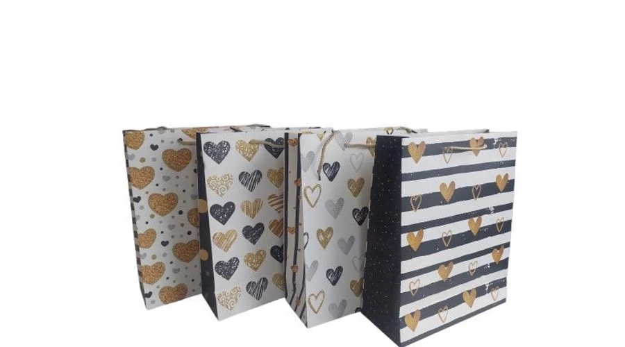 Ajándéktasak szívecskés glitteres 32*26*10cm 4féle minta