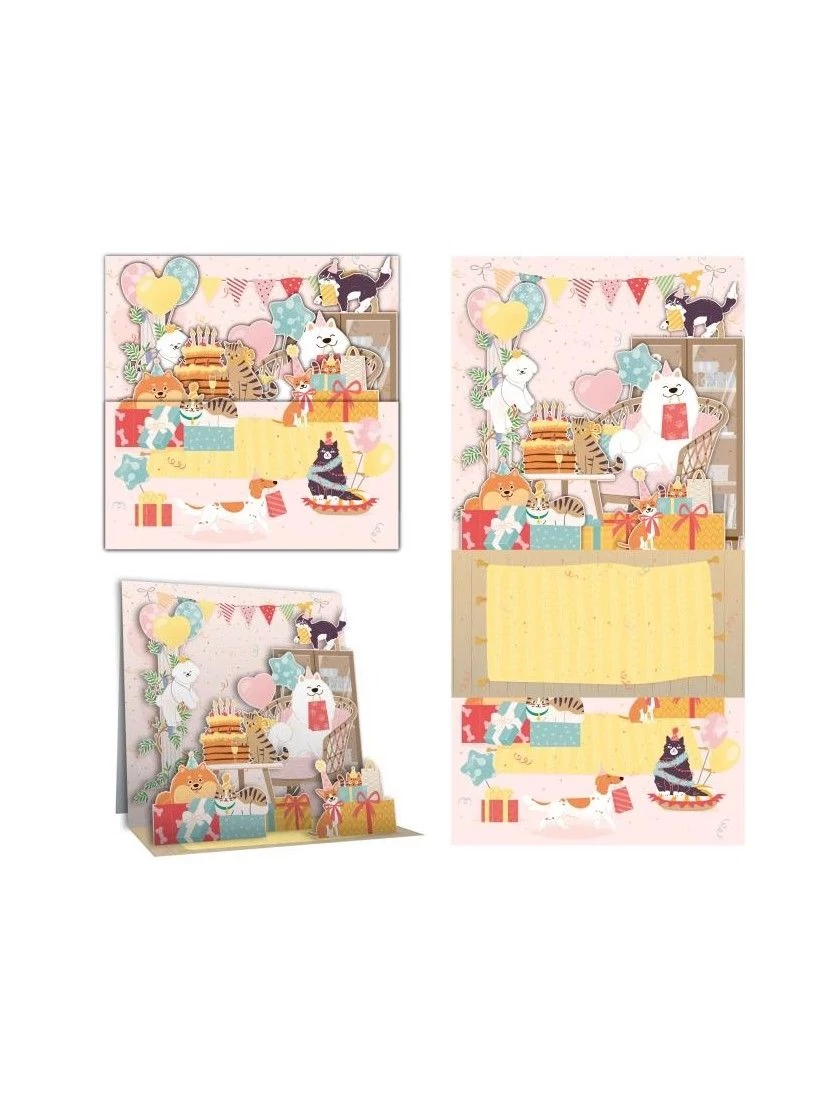 Carres Magiques Képeslap 15*15cm Birtday Cats and Dogs