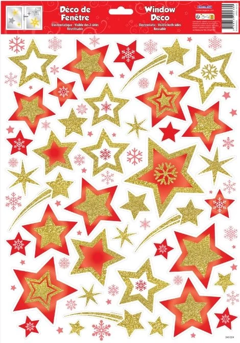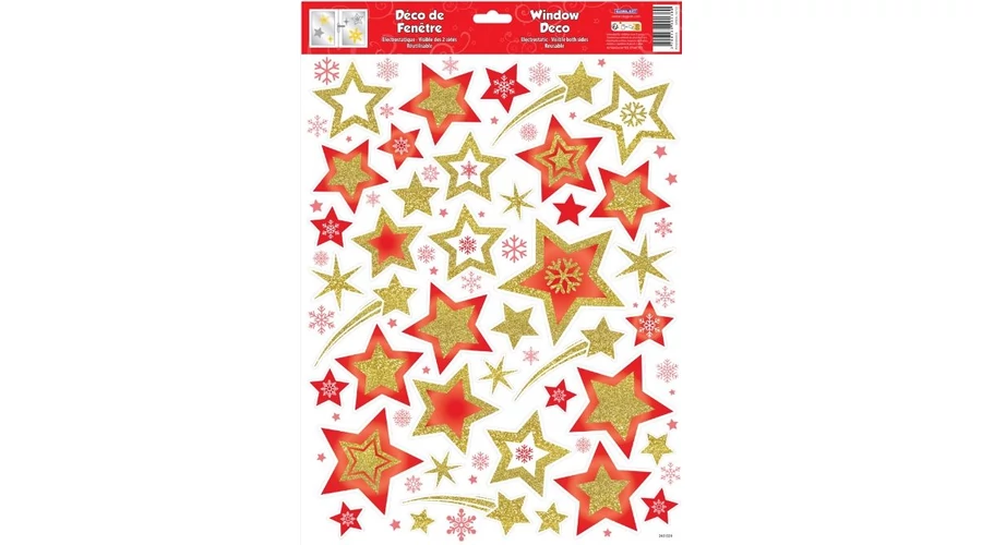 Christmas Ablakmatrica - Arany, Piros csillagok 30*42cm