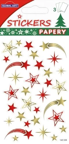 Christmas Papery Matrica - Piros-Arany csillagok 8*12cm