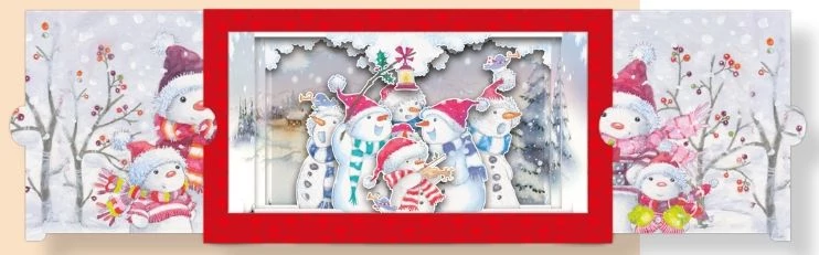 Christmas Petits Theatres Képeslap - Hóemberek 225*120mm