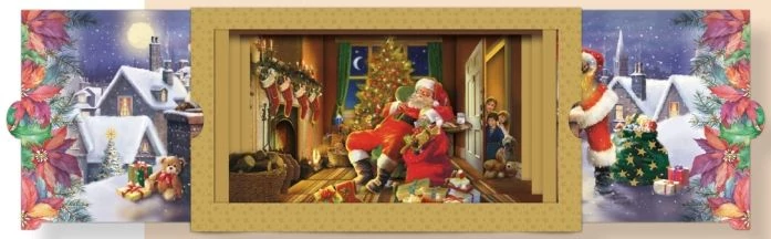 Christmas Petits Theatres Képeslap - Mikulás kéménynél 225*120mm