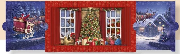 Christmas Petits Theatres Képeslap - Mikulás szánon (piros) 225*120mm