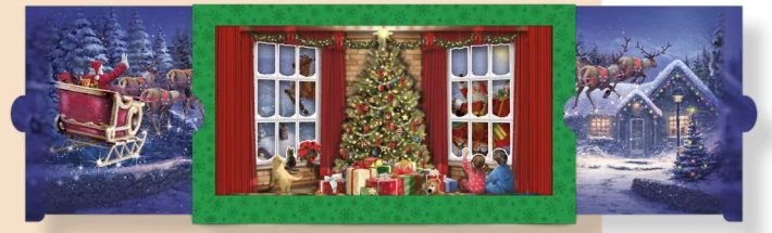 Christmas Petits Theatres Képeslap - Mikulás szánon (zöld) 225*120mm
