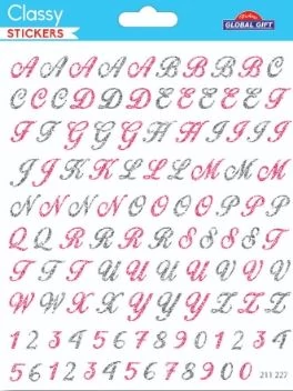 Classy Matrica - Rózsaszín-ezüst glitteres betűk+számok 15*17cm