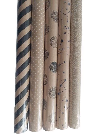 Csomagolópapír 1ív Kraft papír, vegyes mintákkal 200*70cm-es ívek