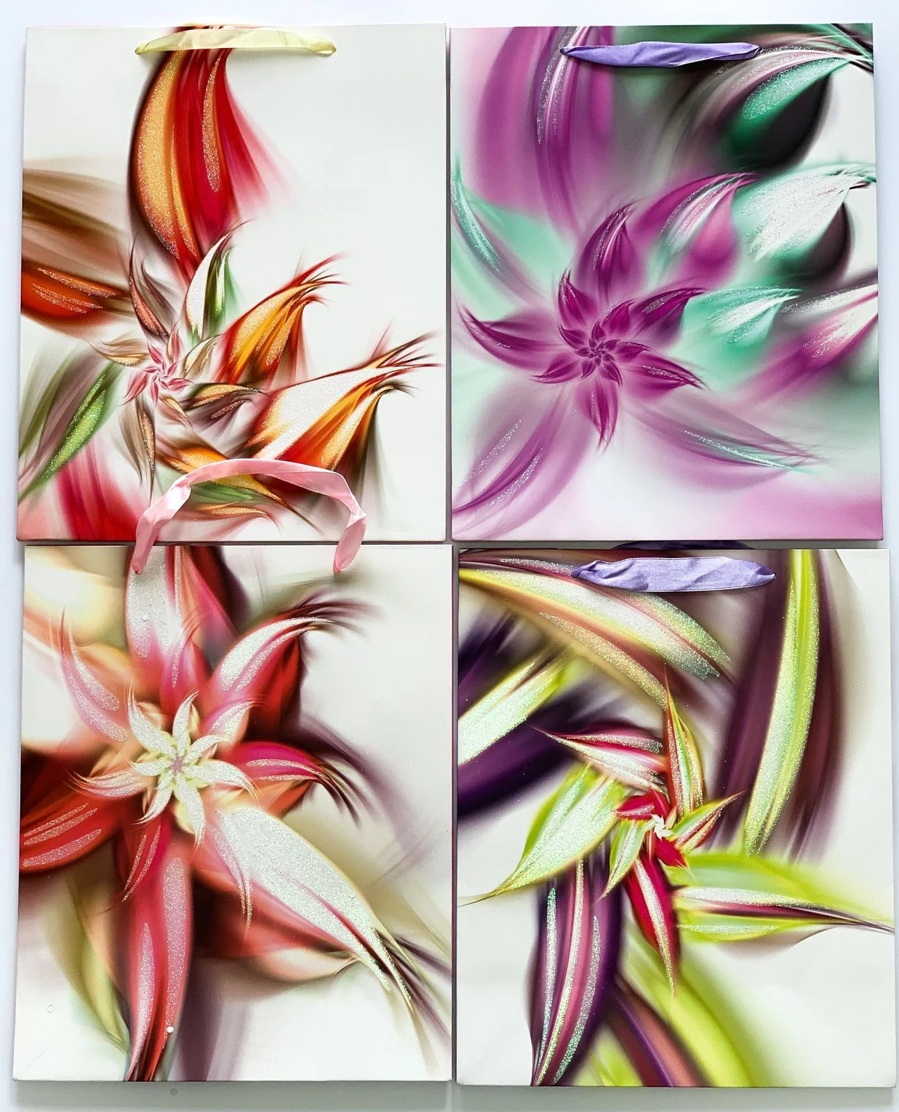 Dísztasak "Daybreak" glitteres virágos (32*26*12cm) 4féle minta