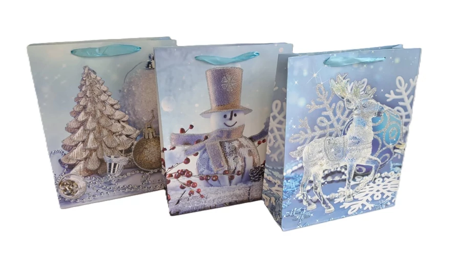 Dísztasak Karácsonyi Kékes hangulat (glitteres) 26*32*10cm 3minta