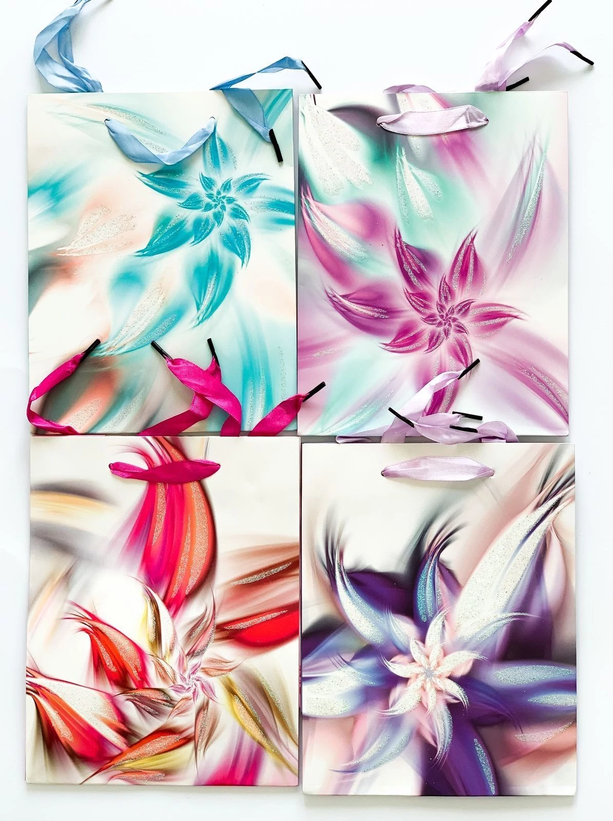 Dísztasak Nightbreak glitteres virágok 42*30*12cm 4féle minta