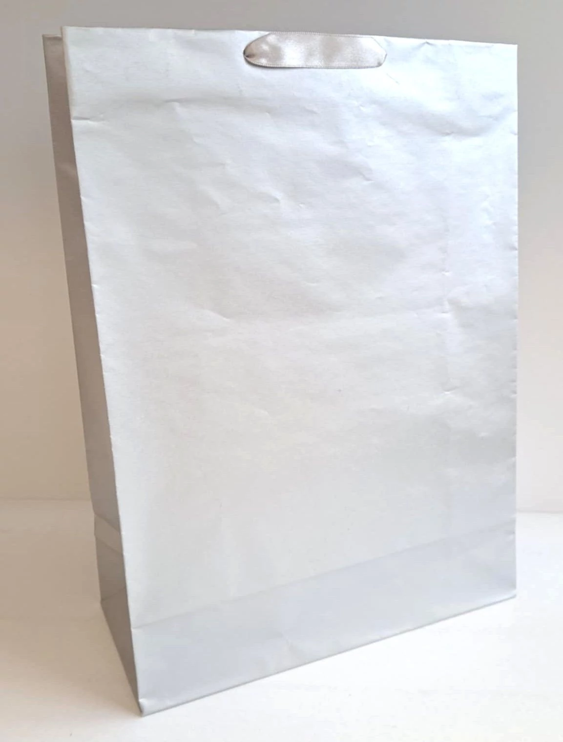 Dísztasak szalagos perlage Ezüst 28*38cm