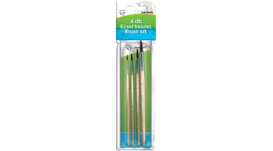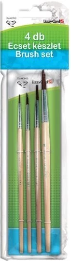4 darabos natúr fanyelű ecset készlet, póniszőr ecsetfejjel. Méretei: 2, 4, 6, 10.