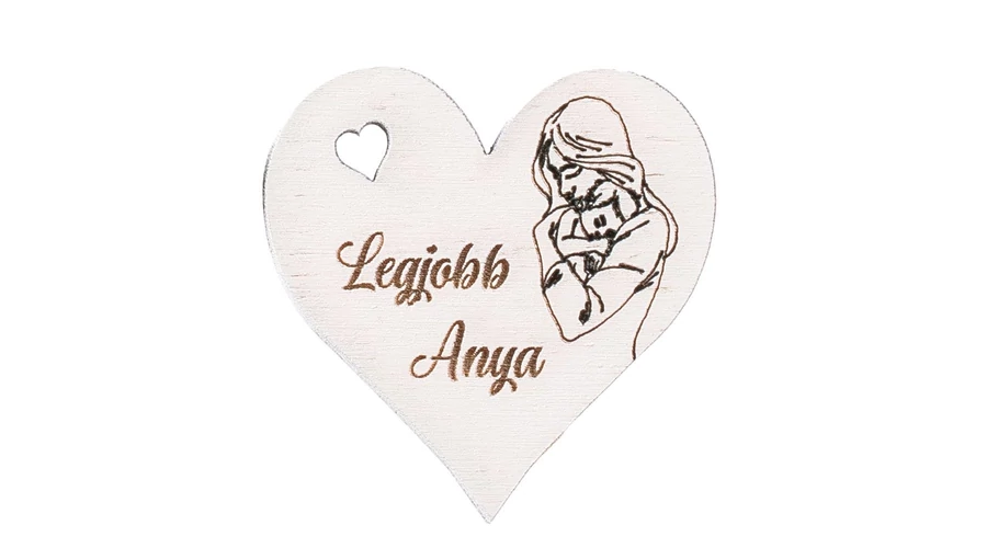 Fa dekor szív fehér 5cm 5db-os "Legjobb anya"