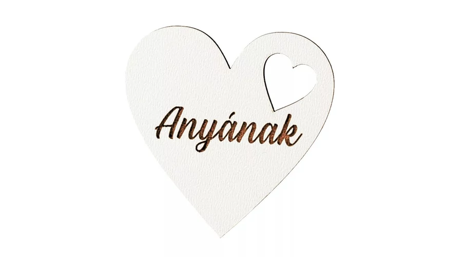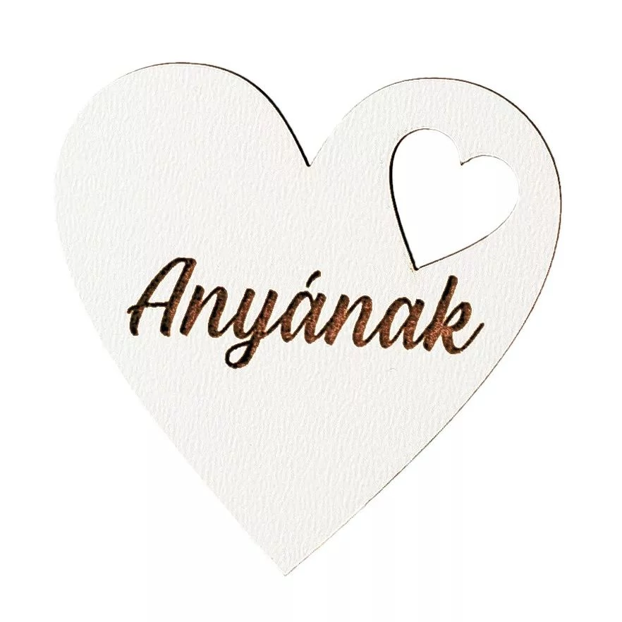 Fa dekor szív fehér 5cm 6db-os "Anyának"
