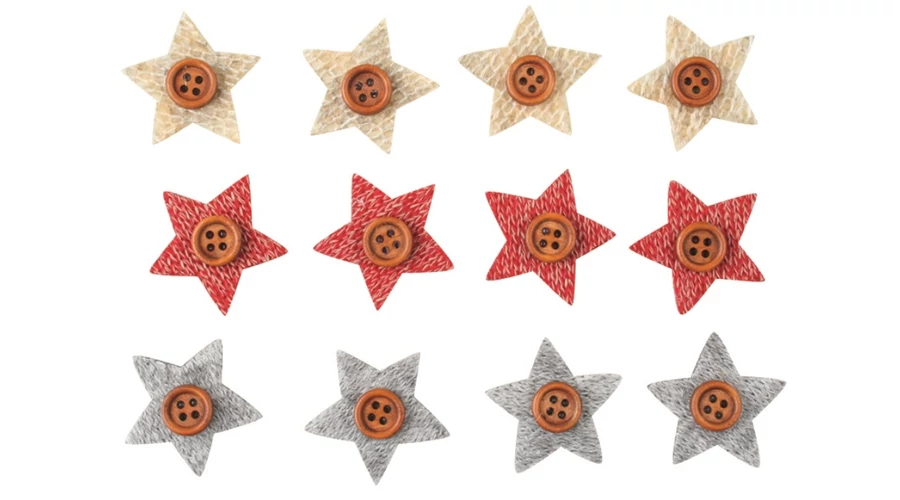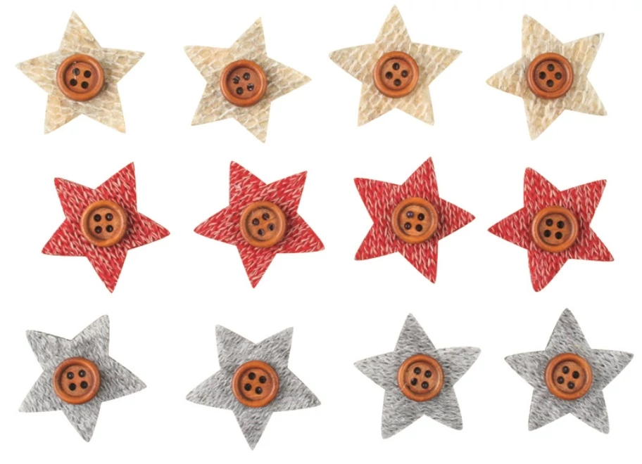 Filc dekoráció ragasztókoronggal Csillag gombbal 3cm 12db-os