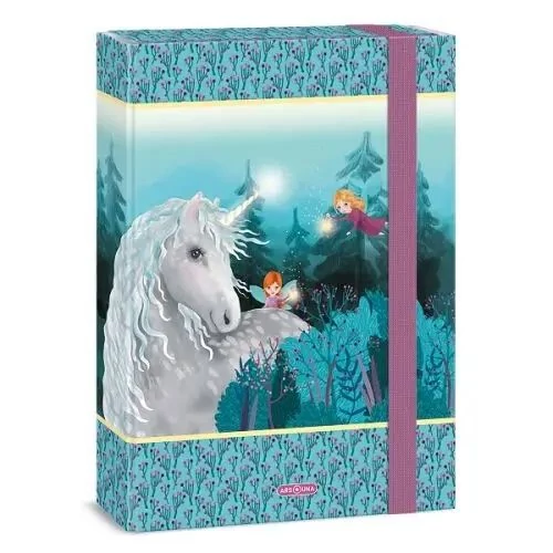 A/4 méretű füzetbox. Kemény, tartós kartonból, 4 cm-es gerinccel, fényes fóliával, 7 mm széles gumipánttal. Belseje egy színnel nyomott. Füzetek, iratok tárolására .