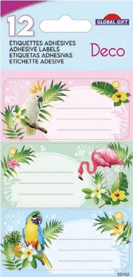 Füzetcímke Etiq.Deco 12db Trópusi madarak