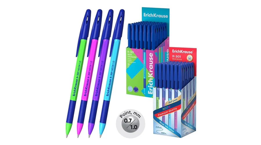 Klasszikus golyóstoll standard hegyű kivitelben és cserélhető tollbetéttel. A toll átlátszatlan, hatszögletű, élénk neon színű testtel, kényelmes, profilozott markolattal és szellőző kupakkal rendelkezik. A kupak és a dugó színe megegyezik a tinta színével. Az öt csatornás hegy 1,0 mm-es golyóátmérővel és a gyorsan száradó tintával kombinálva puha és kényelmes írást biztosít. A folyamatos vonalhossz 2000 m 0,5 mm-es szélességgel.