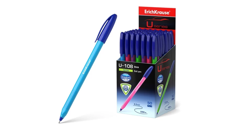 Eldobható golyóstoll vékonyított tűheggyel és az egyedi Ultra Glide technológiával. A toll háromszög alakú, átlátszatlan testtel rendelkezik, élénk neon színekben, kényelmes, profilozott markolattal és szellőző kupakkal. A kupak és a dugó színe megegyezik a tinta színével. A hatcsatornás hegy az 1,0 mm-es golyóátmérővel és az alacsony viszkozitású tintával kombinálva könnyű, puha és kényelmes írást biztosít. A folyamatos vonalhossz 1000 m 0,3 mm-es szélességgel.