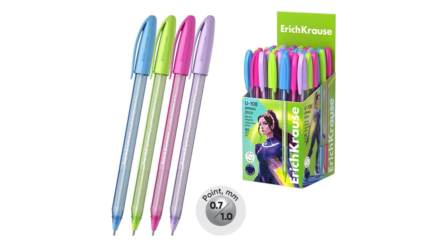 Eldobható golyóstoll vékonyított tűheggyel és az egyedi Ultra Glide Plus technológiával. A toll áttetsző, háromszög alakú testtel rendelkezik, lágy pasztellszínekben, kényelmes fogású résszel és szellőző kupakkal. A hatcsatornás hegy, a 0,7 mm-es golyóátmérővel, az ultra alacsony viszkozitású tintával kombinálva könnyű, puha és kényelmes írást biztosít. A folyamatos vonalhossz 1000 m, 0,26 mm-es szélességgel.