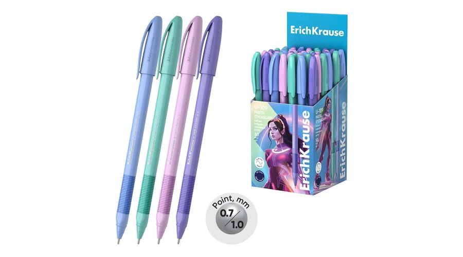 Eldobható golyóstoll vékonyított tűszerű heggyel és az egyedi Ultra Glide technológiával. A toll átlátszatlan, háromszög alakú, lágy pasztellszínű testtel, kényelmes, profilozott gumi markolattal és szellőző kupakkal rendelkezik. A hatcsatornás hegy, a 0,7 mm-es golyóátmérővel, az ultra alacsony viszkozitású tintával kombinálva könnyű, puha és kényelmes írást biztosít. A folyamatos vonalhossz 1000 m, 0,26 mm-es szélességgel.