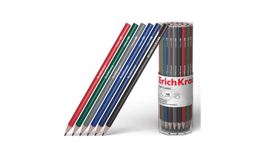 Fekete, háromszög alakú HB grafitceruza . Nagy ütésállósággal. Könnyű hegyezhetőség. A 2,2 mm átmérőjű grafit nem karcolja meg a papírt és nem morzsolódik. Hossza 175 mm.