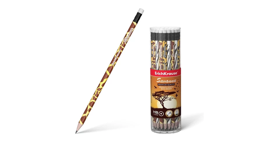 Kerek grafitceruza radírral, válogatott fából készült. Keménység: HB. A speciális fa impregnálás és a szilárd grafitragasztás nagy törésállóságot biztosít. A puha fa és a grafit tökéletes illeszkedése könnyű hegyezést és gazdaságos ceruzahasználatot biztosít. A 2,2 mm átmérőjű grafit nem karcolja a papírt és nem morzsolódik. A közepes keménységű radír modern, környezetbarát és hipoallergén, PVC-mentes hőre lágyuló gumiból (TPR) készült. Ceruza hossza: 188 mm.
