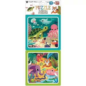 Puzzle , 2 kép, 15x15 cm, 16 és 20 részes, állatkák
