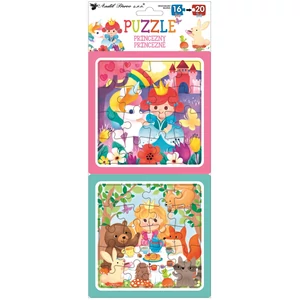 Puzzle , 2 kép, 15x15 cm, 16 és 20 részes, hercegnők
