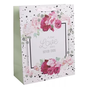 Papírtasak "A true love story never ends" virágos L 26*32cm