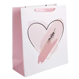 Papírtasak Rózsaszín-Rosegold szív M 18*23cm