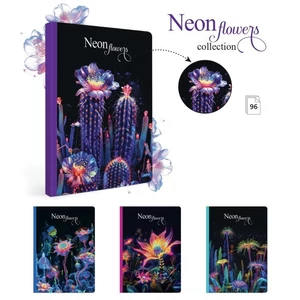 Füzet kemény fedeles A/4 96lap NEON FLOWERS vonalas