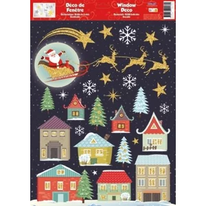 Christmas Ablakmatrica - Karácsonyi falu Mikulással 30*42cm