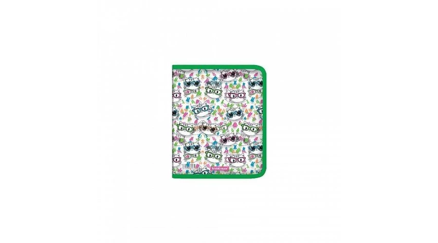 Mókás macskás mintájú cipzáras irattartó mappa homokolt felületű (sand texture), karc- és ujjlenyomatálló műanyagból, cipzárral zárható kivitelben.