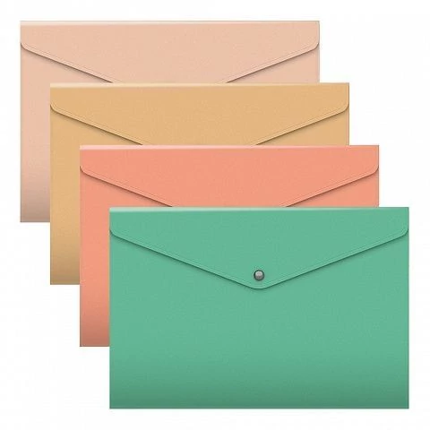 A mappa kiváló minőségű, átlátszatlan műanyagból készült, "matt" felülettel, amelyen nem látszanak az ujjlenyomatok és a kisebb karcolások. Dokumentumok tárolására tervezték. Megbízható patentzár a dokumentumok gyors eléréséhez. Akár 120 papírlapot is képes befogadni. Méret - 232 x 333 x 9 mm, vastagság - 0,18 mm. Színek: olíva, barack, rózsaszín, bézs.