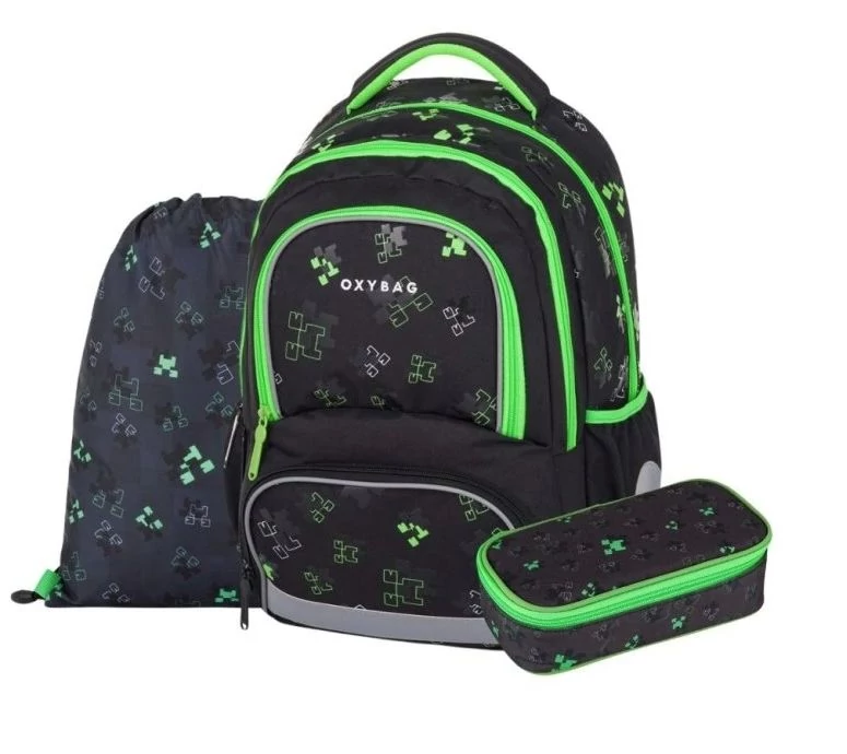 Iskolatáska szett Oxy Next anatómiai Green Cube