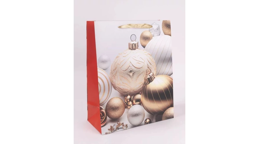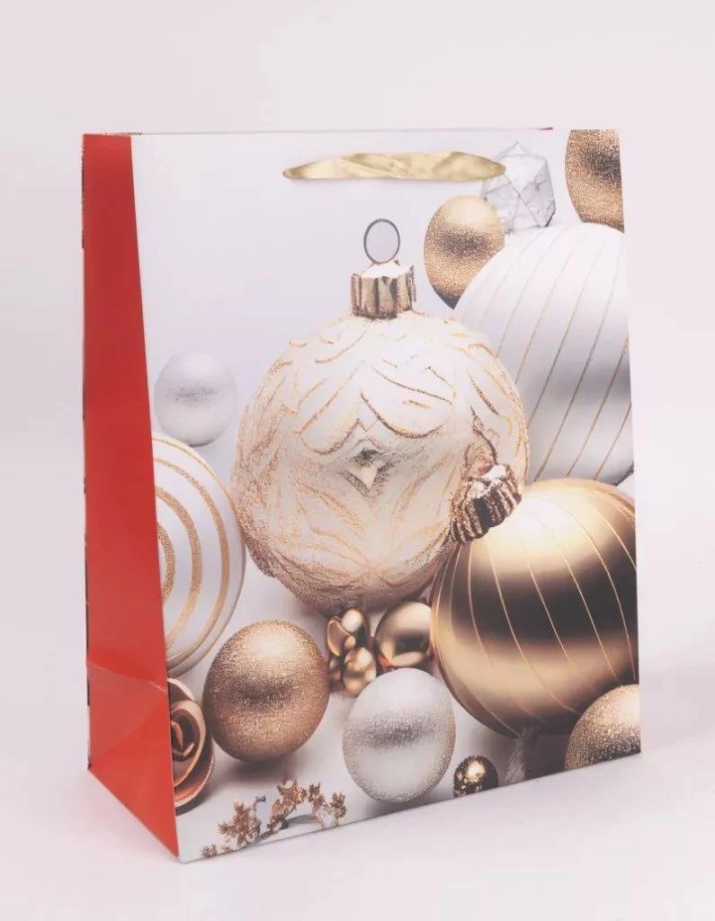 Karácsonyi papírtasak Arany gömbdíszek L 26*32cm