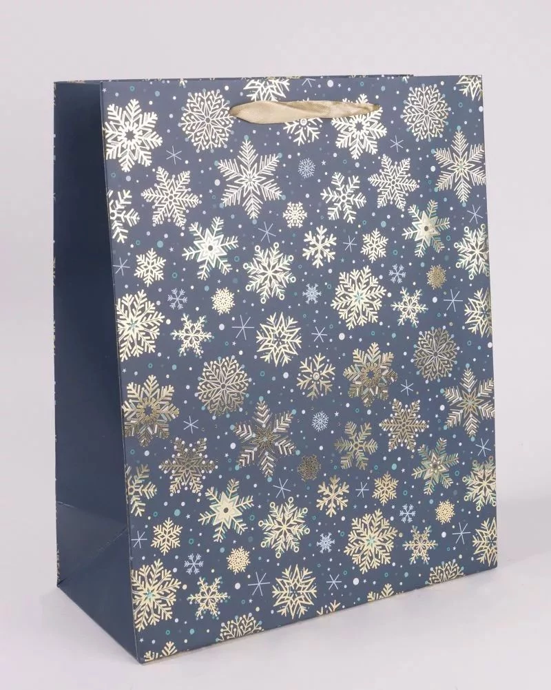 Karácsonyi papírtasak Arany hópihék kék alapon S 11*14cm