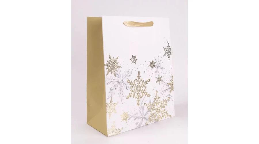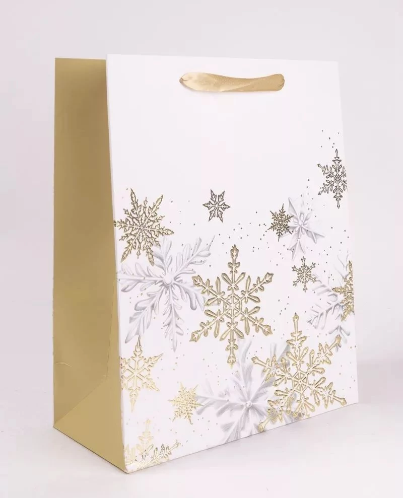 Karácsonyi papírtasak Arany hópihék L 26*32cm