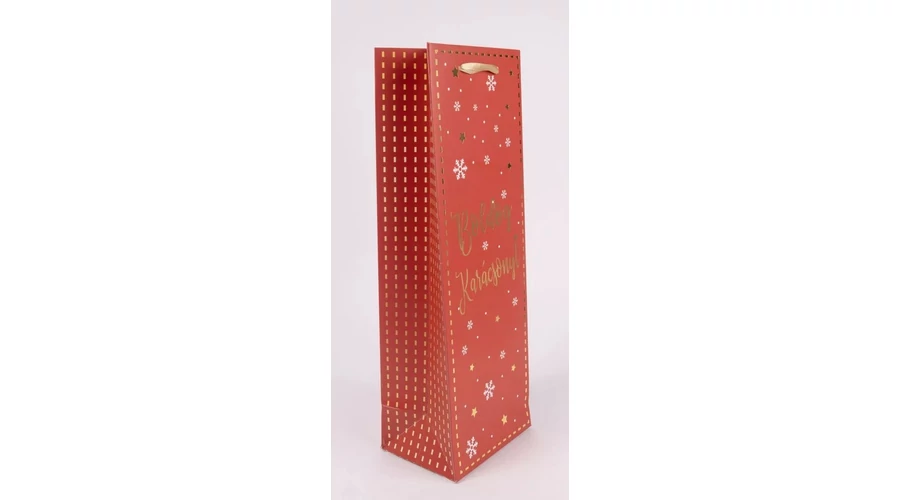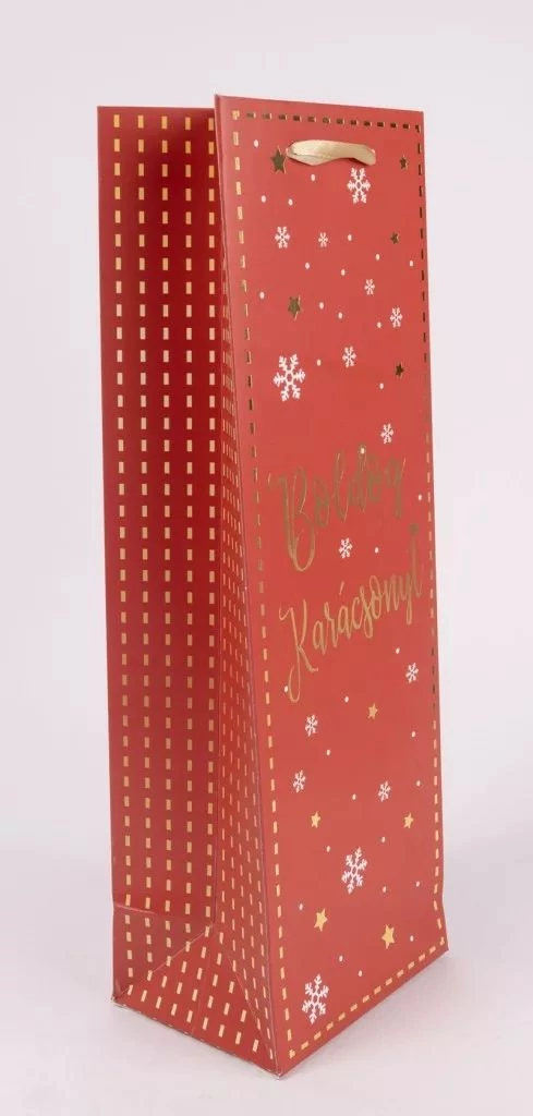Karácsonyi papírtasak "Boldog Karácsonyt" Piros Arany hópihék B 12*36cm