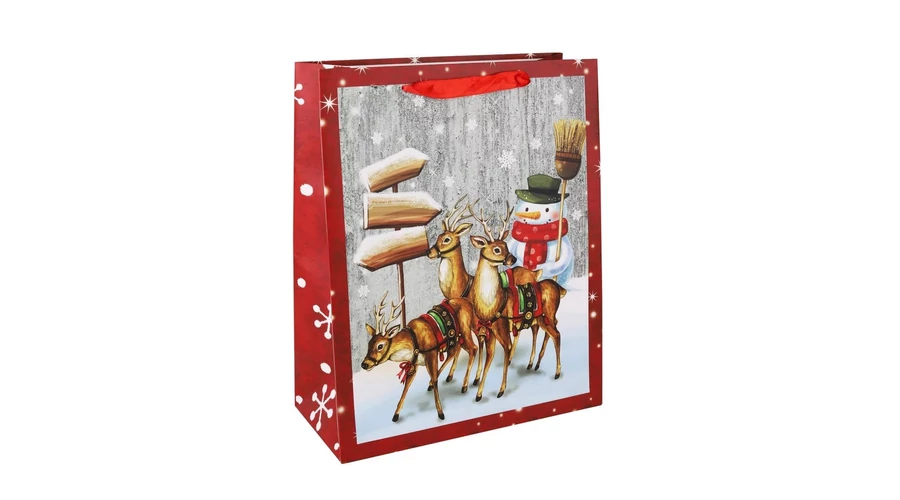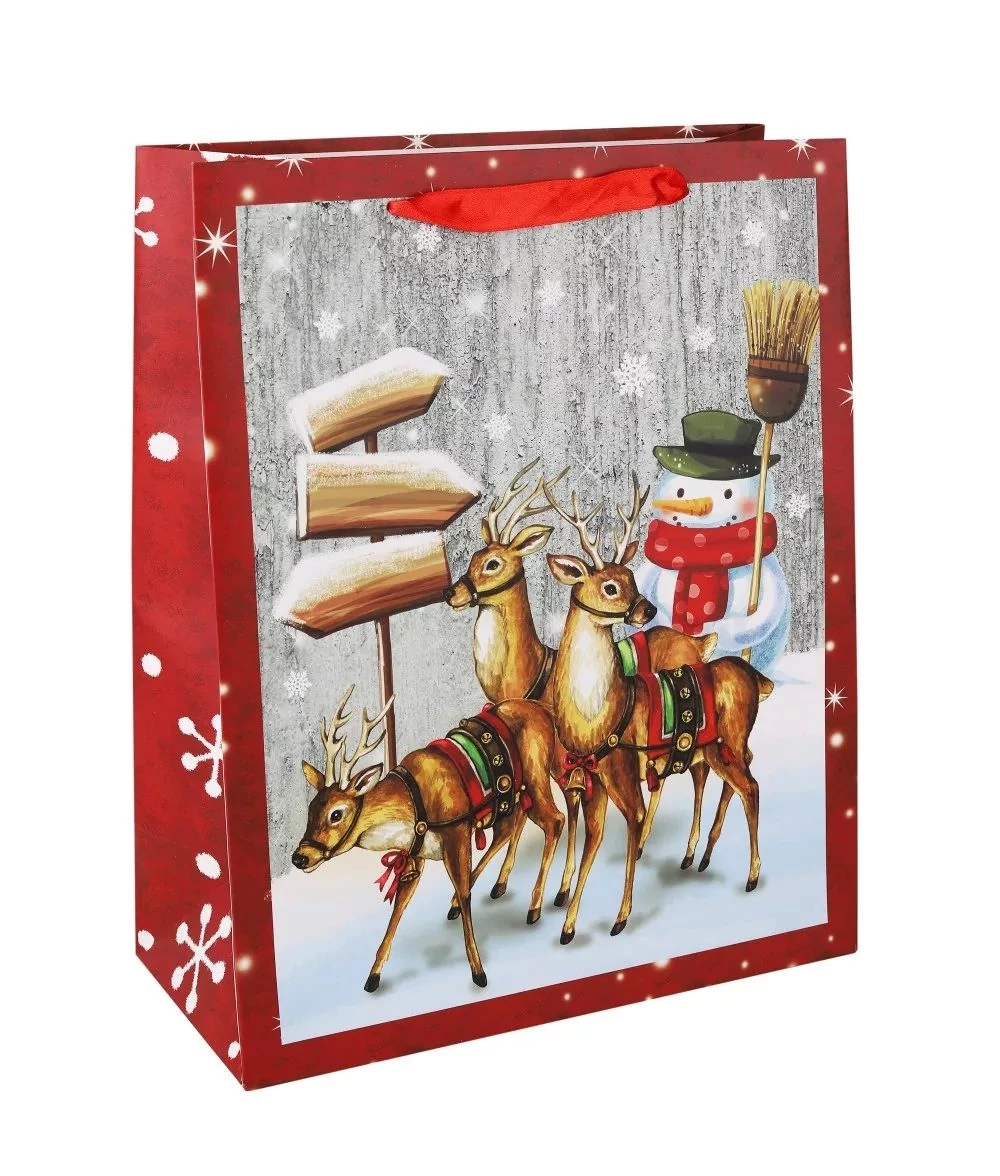 Karácsonyi papírtasak Hóember Rénszarvasokkal M 18*23cm