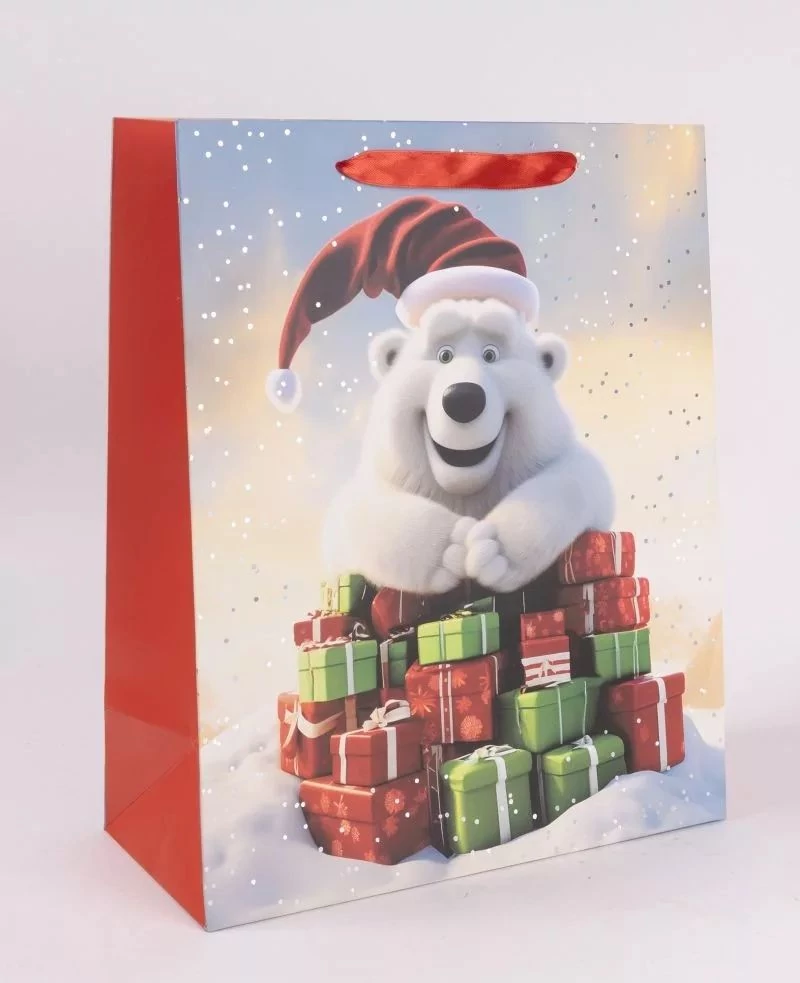 Karácsonyi papírtasak Jegesmaci ajándékokkal L 26*32cm