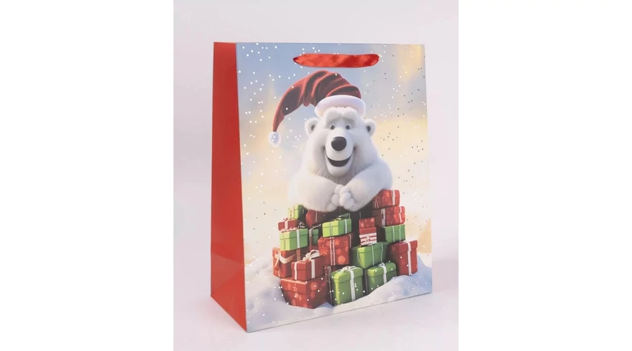 Karácsonyi papírtasak Jegesmaci ajándékokkal M 18*23cm