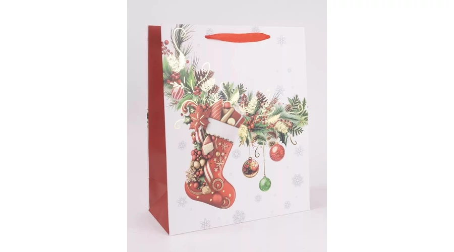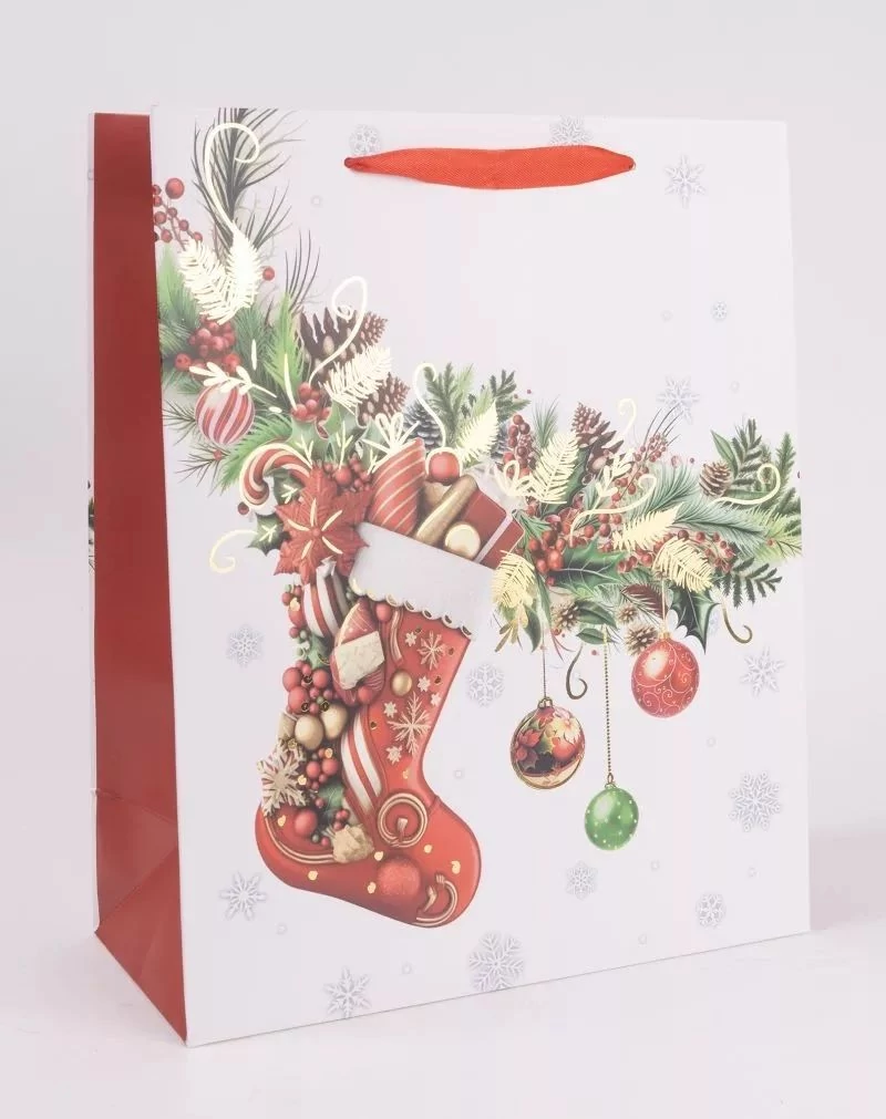 Karácsonyi papírtasak Karácsonyi zokni és díszek M 18*23cm